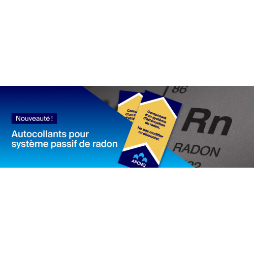 Conformes aux exigences du Code de construction et tel qu’exigé par la réglementation, ces autocollants facilitent l’identification des colonnes d’extraction radon sur les conduites en PVC.